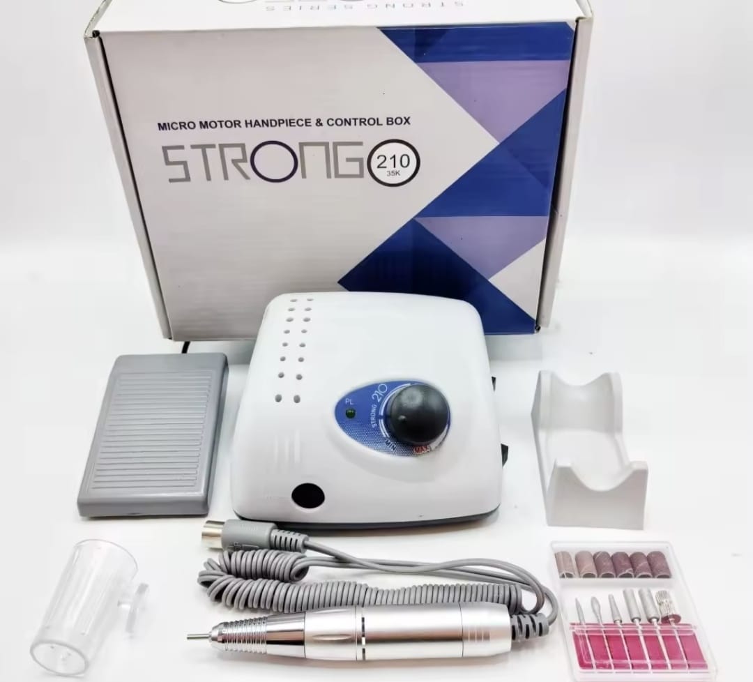 Set vsebuje: strojček, kakovostne svedre in bruse ter nožno stopalko.